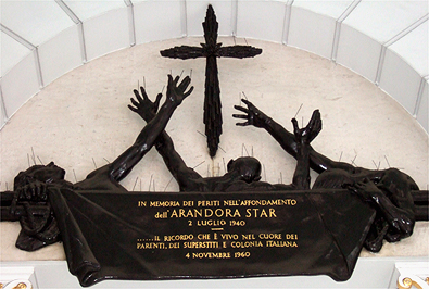 In early June 1940, immediately Italy entered the Second World War, all male Italian passport holders between the ages of 18 and 70 years were arrested by the police and military - forcibly and hurriedly taken from their homes or their places of business - to be interned under instructions of the British War Cabinet. As is shown from the Red Cross and other reports, these internees were maltreated by the authorities and were held in inhumane conditions, without proper food, sanitary facilities and medical care. Over 700 Italian internees were taken to Liverpool, where they were boarded the former luxury liner Arandora Star, along with over 450 German and Austrian internees and POWs, all destined for Newfoundland, Canada. The ship had been painted grey and armed like a war vessel, and did not fly a Red Cross flag. On the morning of 2nd July 1940, off the coast of Ireland, the Arandora Star was torpedoed and sunk by a German U-47 submarine with the loss of over 800 souls on board. The Forgotten TragedyFor 68 years there had never been an official British commemoration of those who died. However with growing publicity of the tragedy both here and in Italy, and strengthening ties between the UK and Europe, officials from Liverpool Council and the Italian city of Palma met to discuss an official memorial to the victims on Liverpool waterfront. The Parish Church of Our Lady and St Nicholas, Liverpool, was chosen to unveil the plaque in a remembrance service on 2nd July 2008, attended by war veterans, the Italian Ambassador and Archbishop Conti of Glasgow. This was followed by the scattering of Italian, German and British wreaths on the River Mersey in commemoration of those who died. Afterwards the plaque was relocated to its permanent position at the Pier Head, on Liverpool waterfront. Although there has yet to be a full apology, perhaps due to issues regarding compensation, campaigns and committees both here and abroad have successfully raised awareness for the tragic events surrounding the Arandora Star. Recent memorials in England, Scotland and Wales have ensured that the Arandora Star, at one time the 'forgotten tragedy', will at last be remembered.